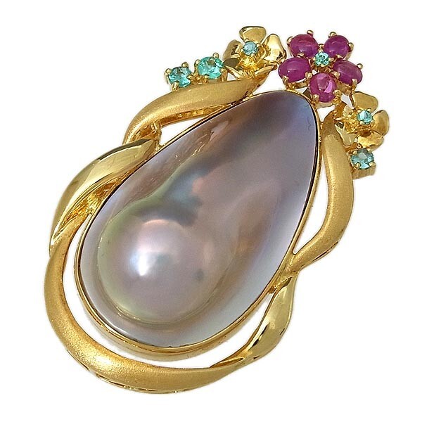 > マベパール ペンダント K18 パライバトルマリン ルビーペンダント 約W28×H45mm R:0.76ct T:0.27ct 18.8g