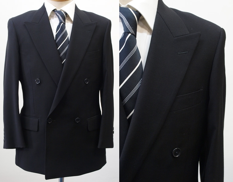 - ◇処分通年AB8/AB3L-T180-190-W82~98cm濃黒ブラックフォーマル毛100%アジャスター付ゆったり2タックダブル礼服オールシーズン新品即決