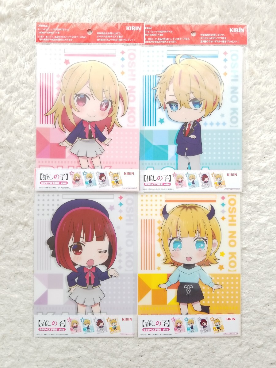 - ☆新品未開封KIRIN×推しの子コラボ限定オリジナルB5サイズ下敷き全4種セット非売品フルコンプ希少アクア有馬かなルビーMEMちょキリン☆