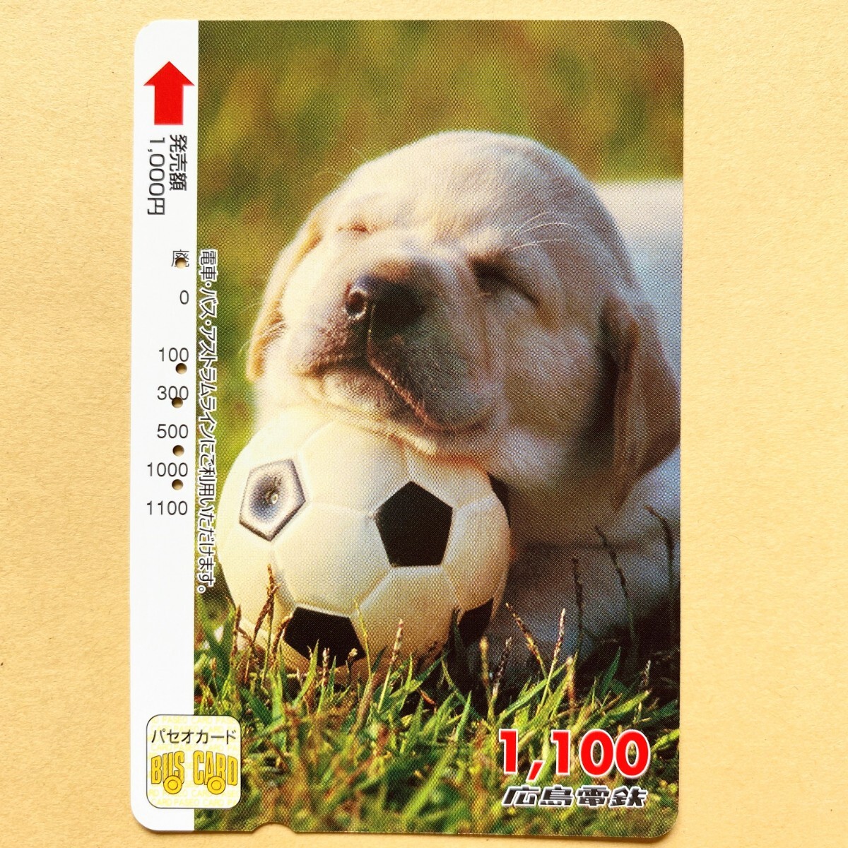 - 【使用済】 パセオカード 広島電鉄 サッカーボールのおもちゃを枕に眠る子犬