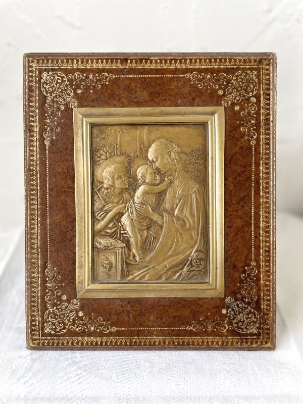 - 聖母子と少年聖ヨハネ 薔薇園の聖母 マリア イエス キリスト レリーフ フランス アンティーク ボッティチェッリ ルネサンス 宗教画