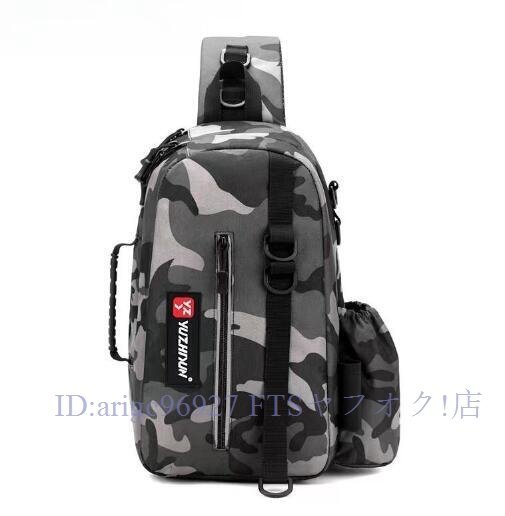 > B1717☆新品多機能釣りバッグ フィッシングバッグ 大容量 防水 道具収納 3WAY ショルダー ウエスト 工具収納 アウトドア (グレー迷彩)