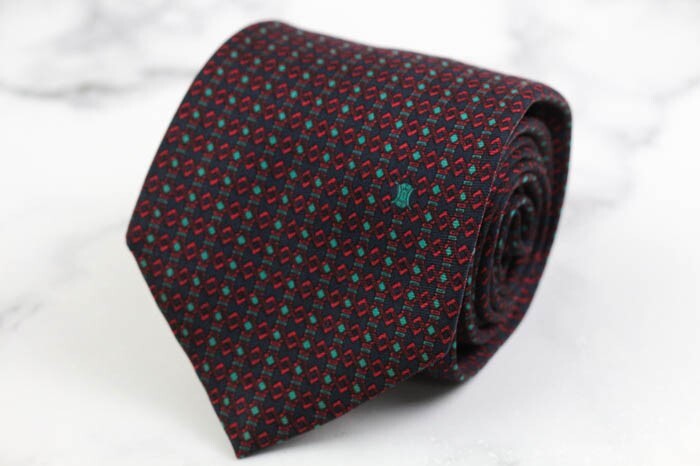 - セリーヌ シルク マカダム 格子柄 パネル柄 スペイン製 ブランド ネクタイ メンズ ネイビー CELINE