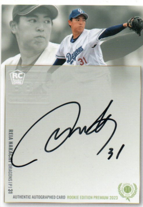- C9913 BBM【仲地礼亜 RC】 2023 ルーキーエディション プレミアム 縦型 SP 直筆サイン 2/49 直書き 中日