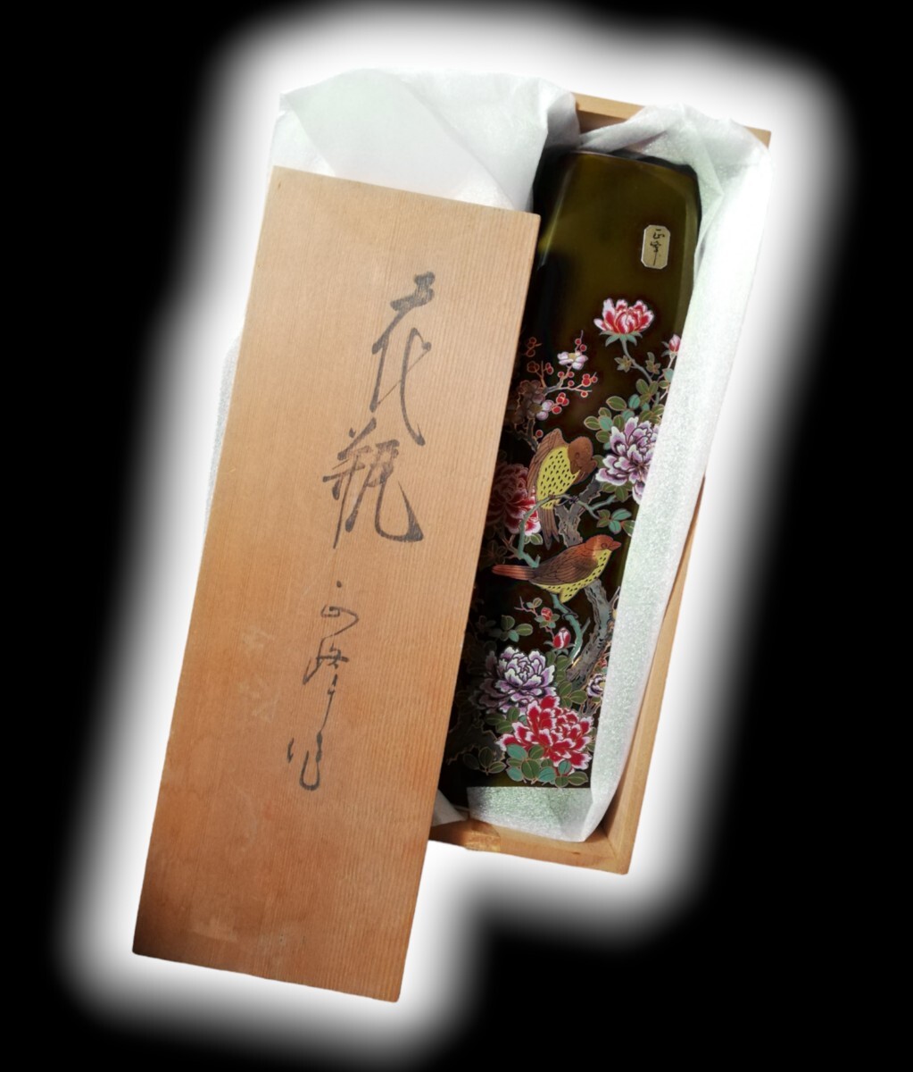 - 【昭和レトロ】 金彩色絵 雀 瑠璃色 / 花瓶 花器 一輪挿し 木箱付き! 骨董品