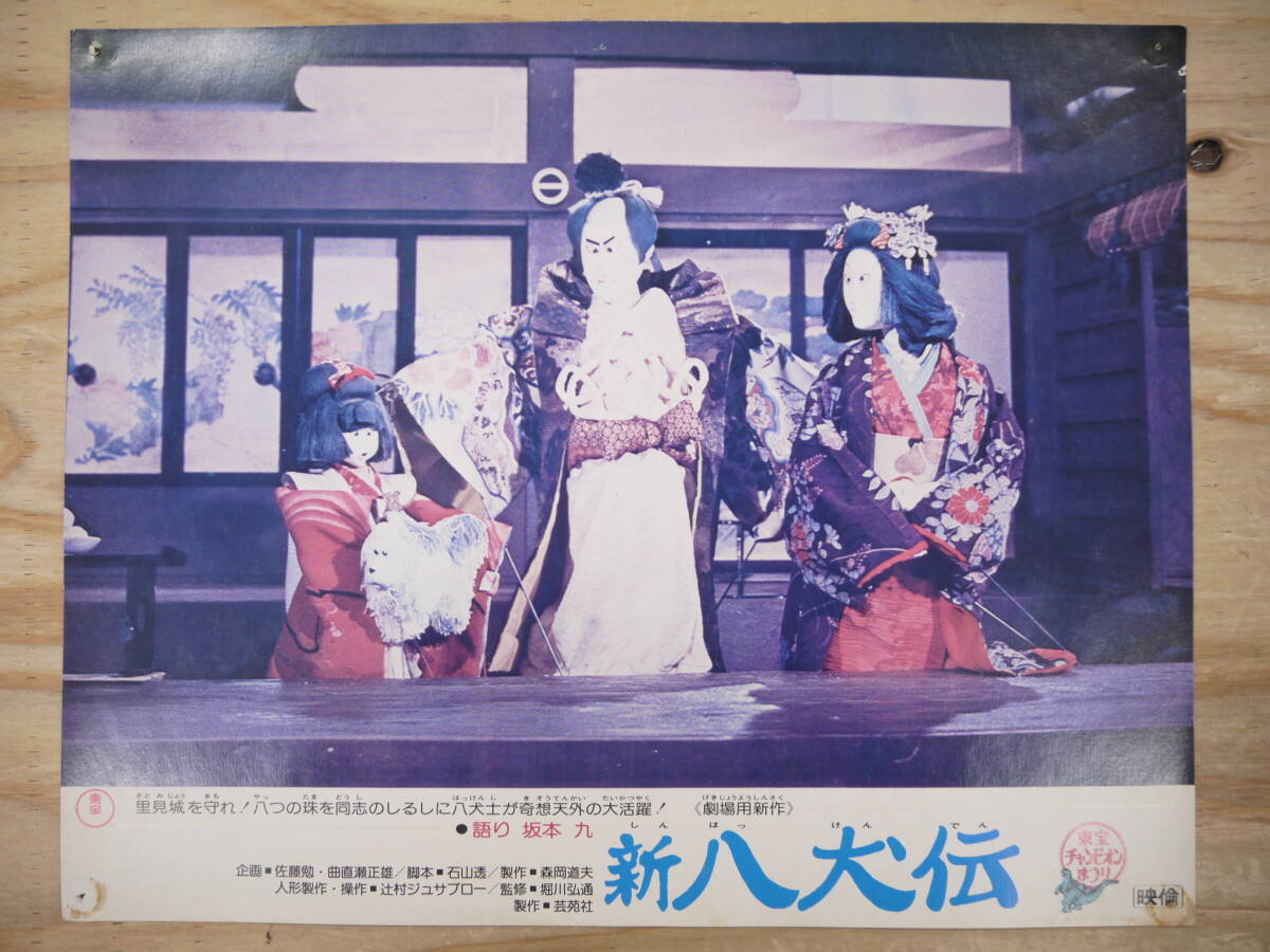> 新八犬伝 ロビーカード 東宝チャンピオンまつり NHK 辻村ジュサブロー 坂本九 昭和50年公開 約34㎝×27㎝ ピン跡、褪色あり