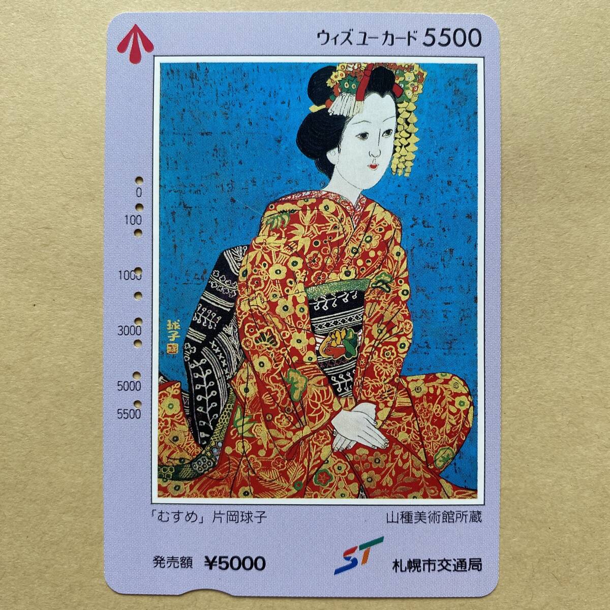 - 【使用済】 絵画ウィズユーカード 札幌市交通局 「むすめ」片岡球子 山種美術館所蔵 着物