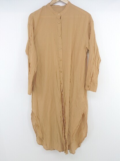 - ◇ OZOC オゾック バンドカラー 長袖 膝下丈 シャツ ワンピース サイズ 38 オレンジ ブラウン系 レディース P