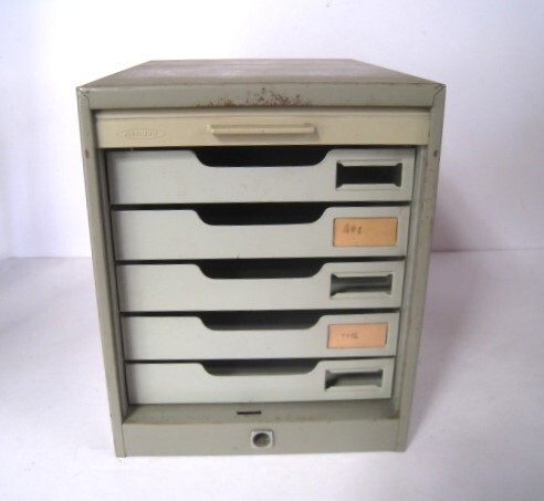 - KOKUYO/コクヨ レトロ スチール製 シャッター付き レターケース 5段引き出し 書類入れ 鍵なし 蛇腹 事務用品 /23N5.16-51