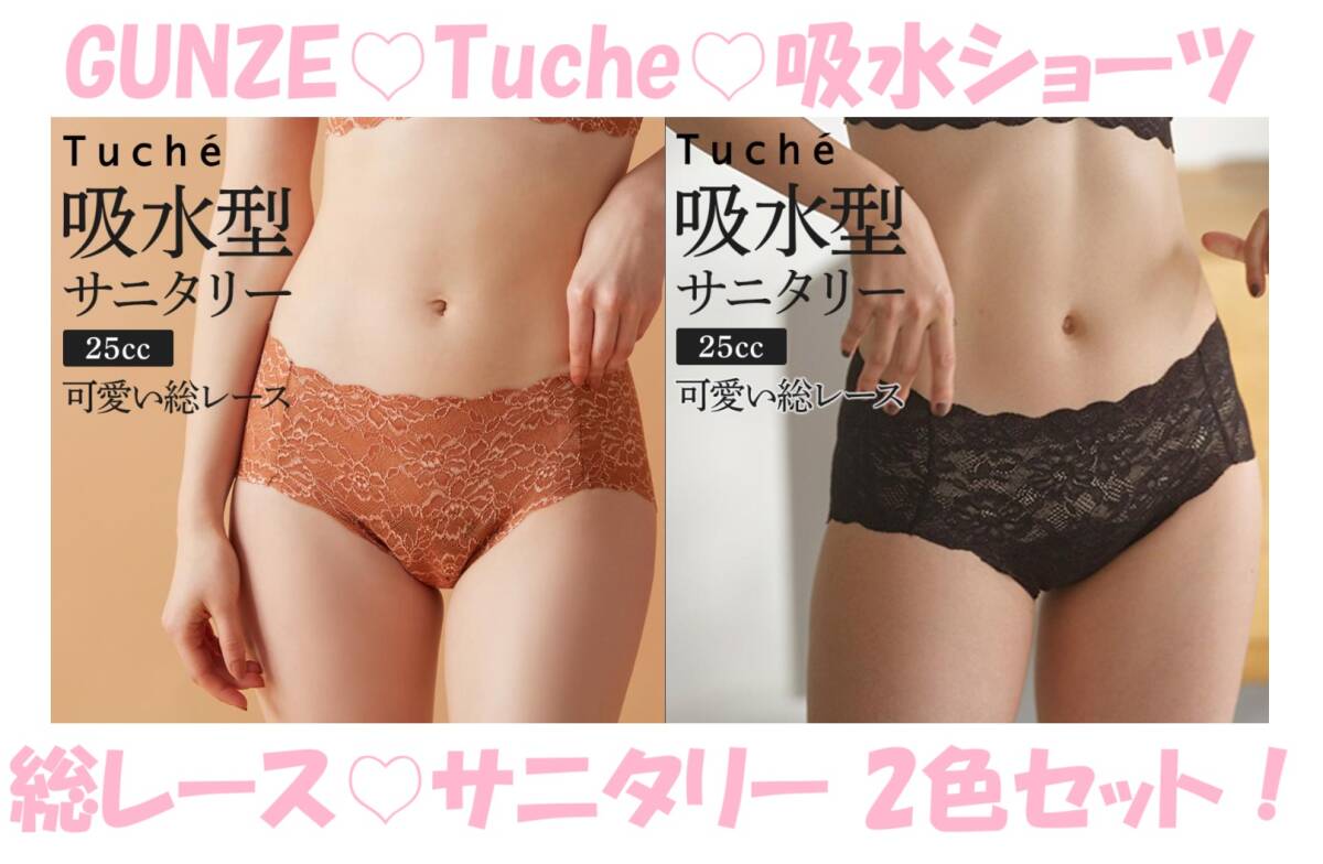 > 2色組*グンゼ*Tuche*吸水ショーツ*総レース*日本製*吸水サニタリーショーツ*羽根付*サニタリー*吸水パンツ*25ml*LL*可愛い*オレンジ*黒*2枚
