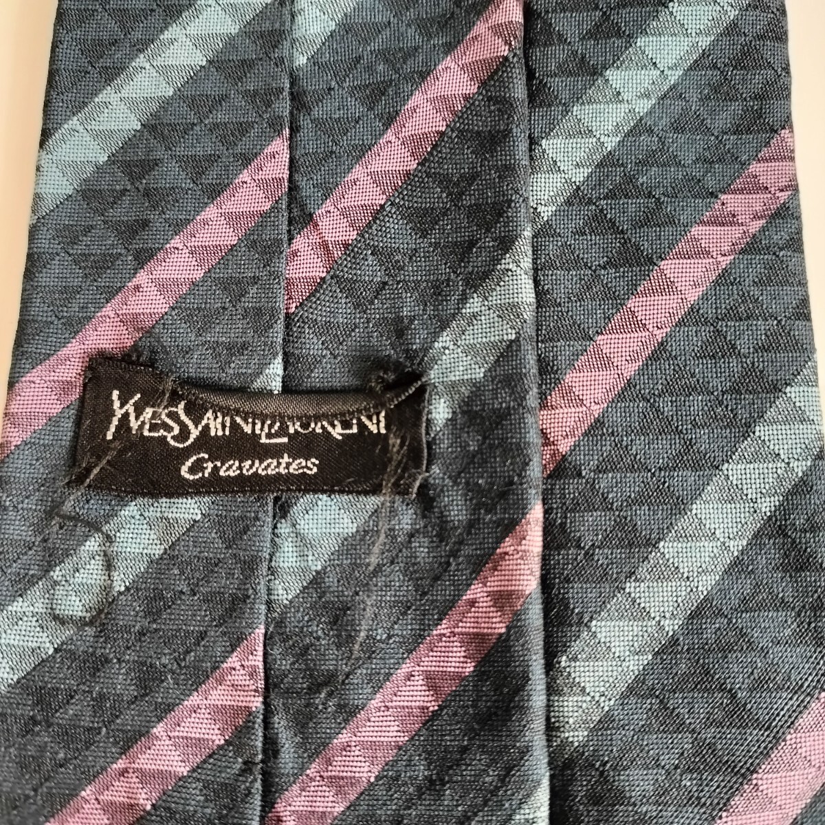- イヴサンローラン(YVES SAINT LAURENT)グレーピンク水色ストライプネクタイ