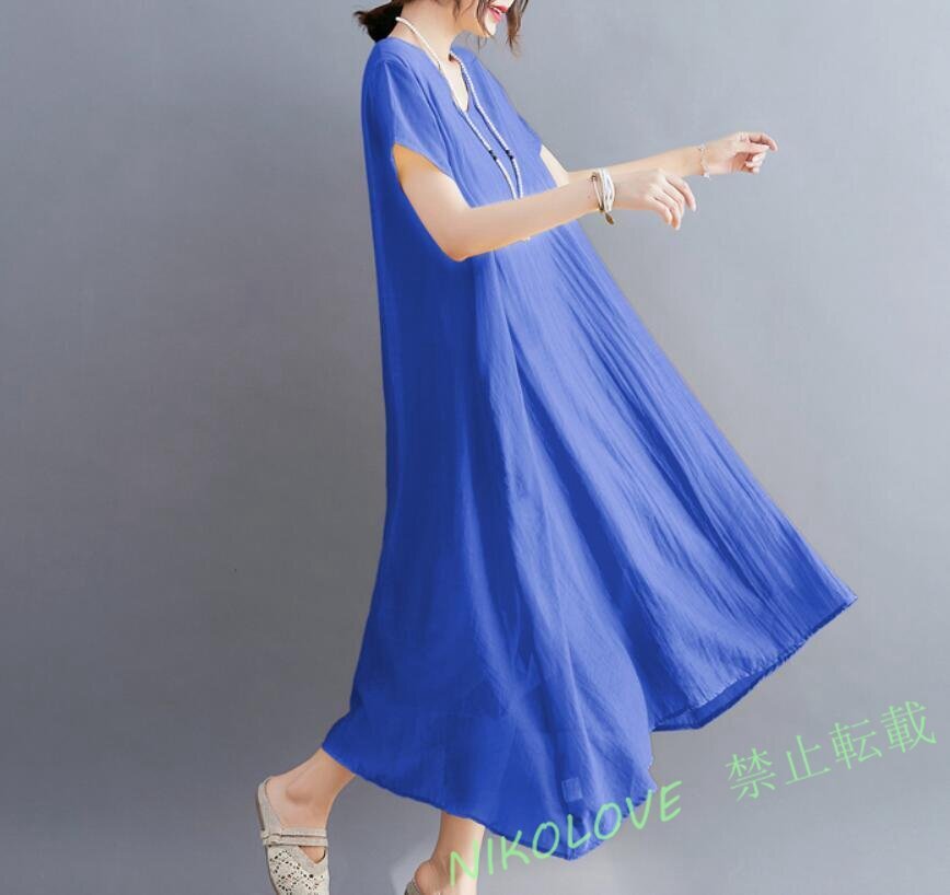 - 新品カジュアル ふんわり ゆったり大きいサイズ 体型カバー 着やせ 半袖 ロングワンピース M~2XL LH533