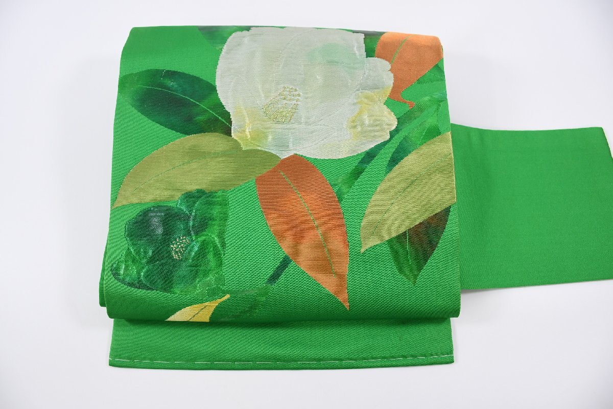 - 名古屋帯 緑 花 帯丈358cm ★着物屋 ne-10386 桜庭呉服店
