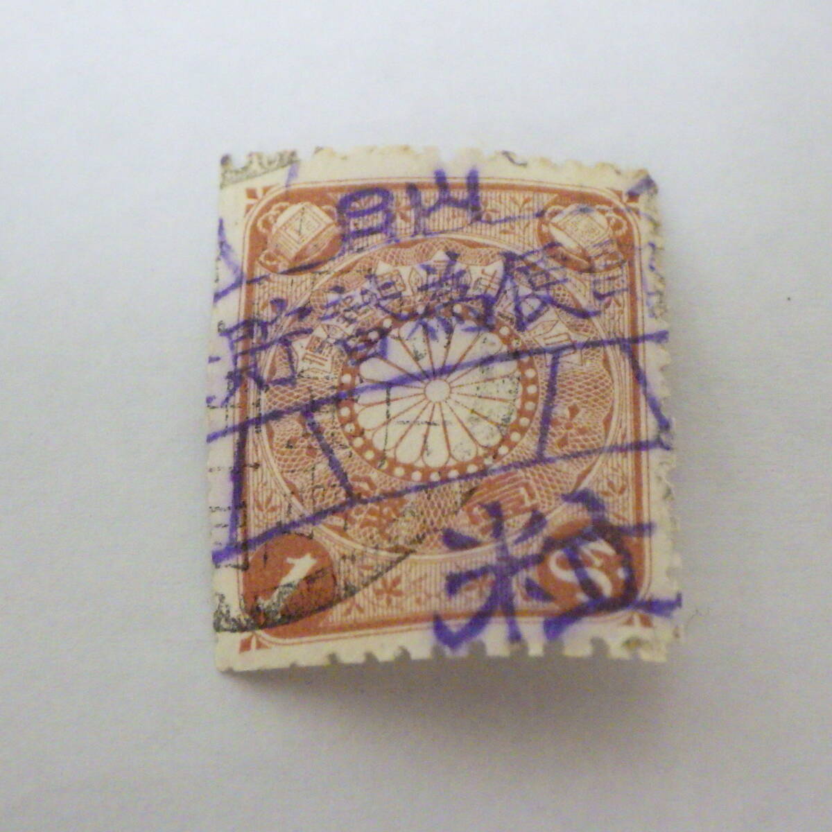 - 日本 切手 日本郵便 菊切手 1銭 消印有 使用済み 郵便切手 貯金台紙の一部?