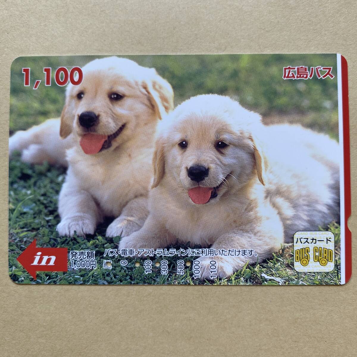 - 【使用済】 バスカード 広島バス 2匹のゴールデンレトリバー 犬