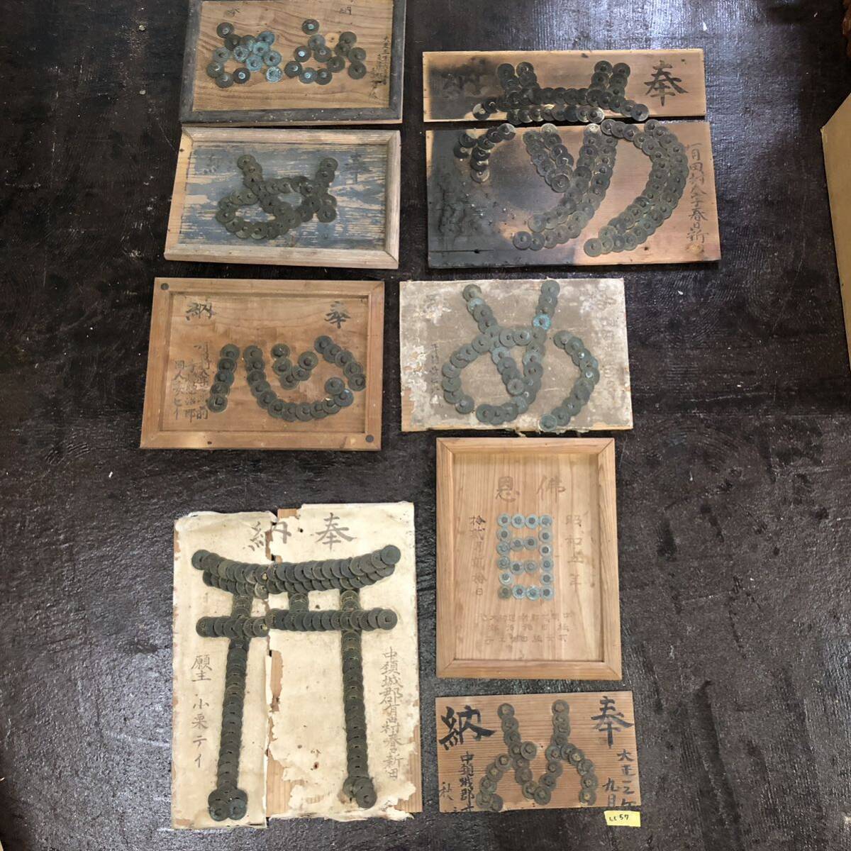- 明治時代 大正 明治43年 神社 縁起物 納奉 昭和レトロ ヴィンテージ 古銭 飾り 日本 お寺 LL57
