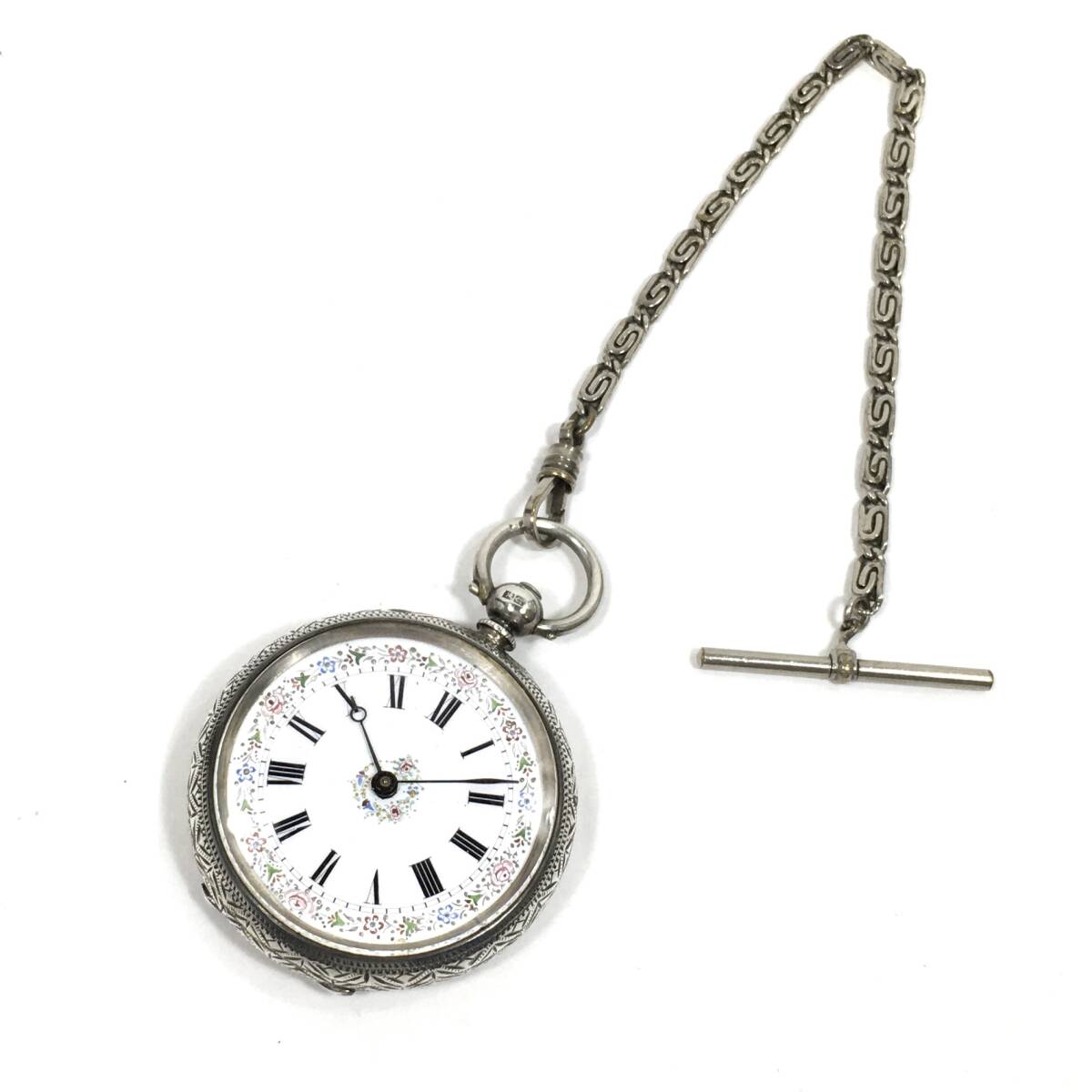 - *鍵付懐中時計 銀無垢 鍵巻式 銀時計 シルバー 装飾時計 花柄 白文字盤 ホワイト イギリス製 アンティーク 訳あり