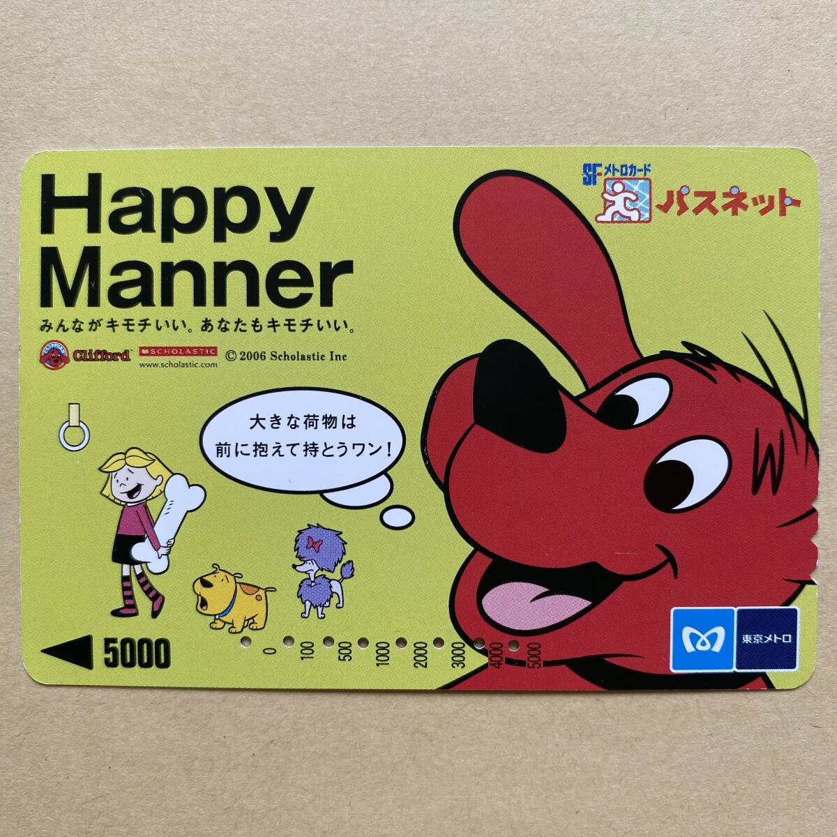 - 【使用済】 パスネット 営団地下鉄 東京メトロ おおきいあかいクリフォード Happy Manner 大きな荷物は 前に抱えて持とうワン!