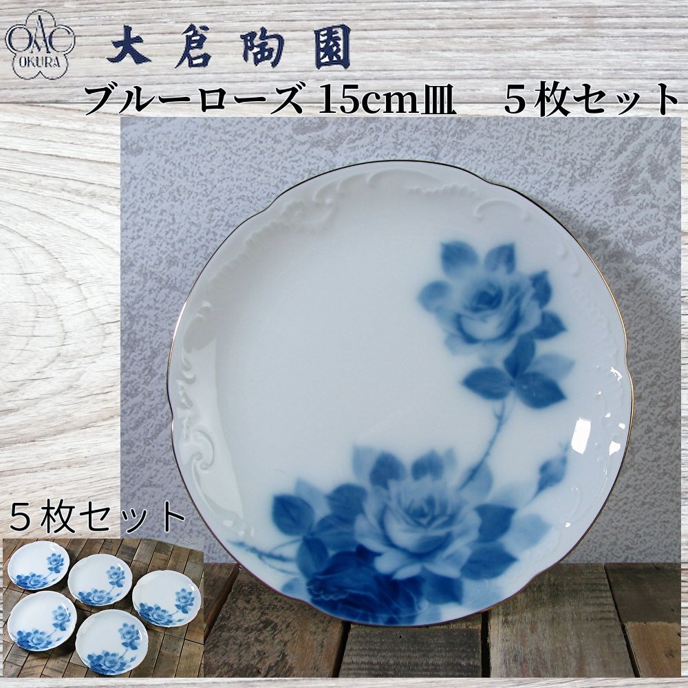 - 大倉陶園 ブルーローズ 銘々皿 5枚セット 幅:15cm 美品 皇室御用達窯/23f058