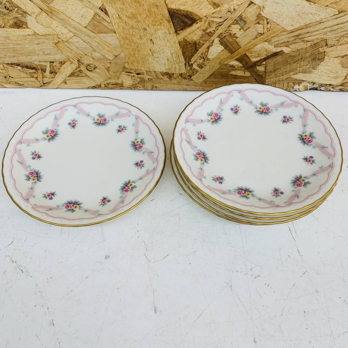> Noritake ノリタケ プレート 小皿 5枚セット Contemporary ホワイト×ピンク 花柄リボン※2400010405341