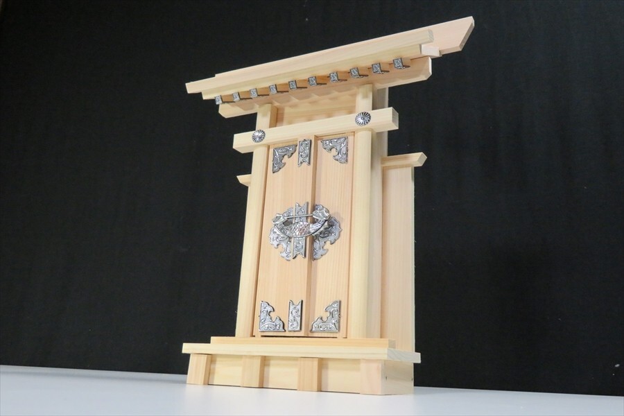 - 神棚 一社 単品 袖付 ~銀風 一社~ いぶし銀 サイズ約 (cm) 高さ35 幅27 奥行7
