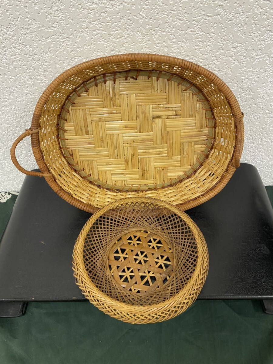 - バスケット かご 籠 竹かご インテリア 昭和レトロ 竹細工 小物入れ No.582