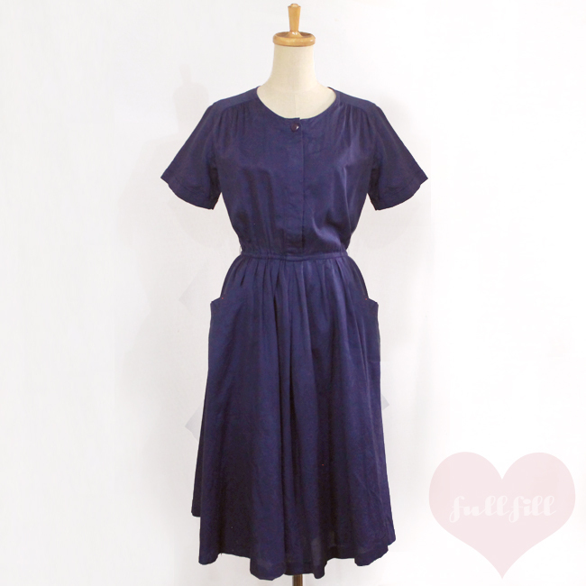 > ワンピース 古着 昭和 レトロ ひまわり柄 刺繍 ビンテージ ヴィンテージ vintage 70s 80s ネイビー コットンワンピース レディース古着