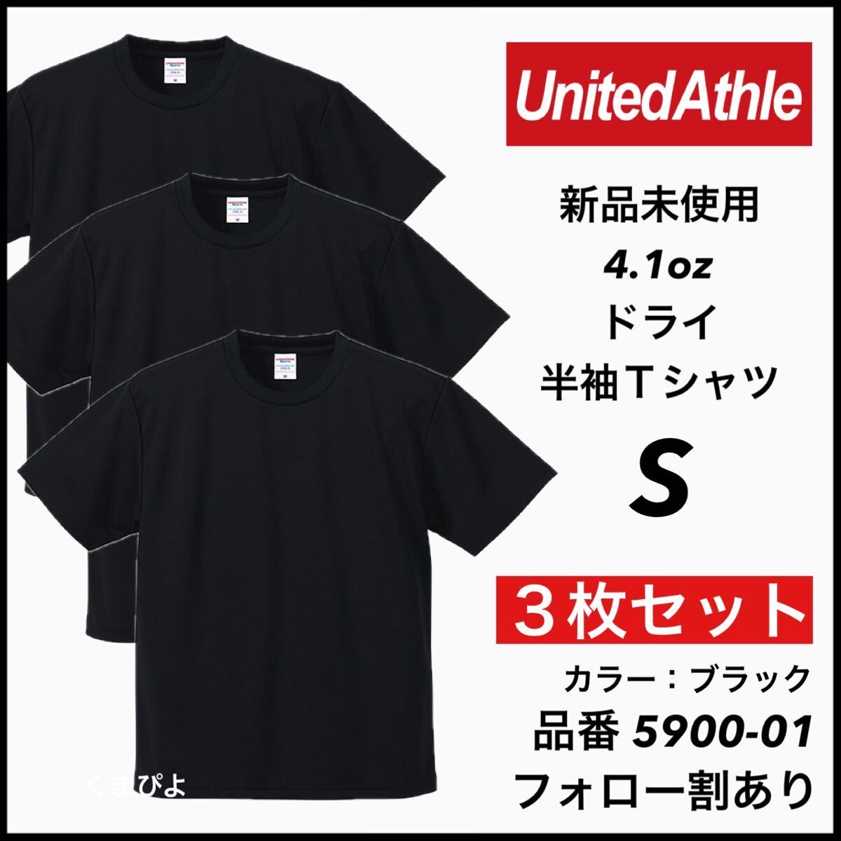 > 新品未使用 ユナイテッドアスレ 4.1oz 半袖 ドライアスレチックTシャツ 無地 吸汗 インナー スポーツ ダンス 黒 ブラック 3枚 S