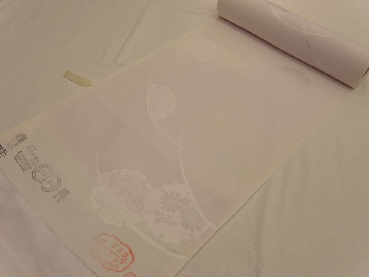 - 新品・正絹・反物★京都丹後ちりめん・長襦袢★薄藤紫色地に露芝に雪輪柄です