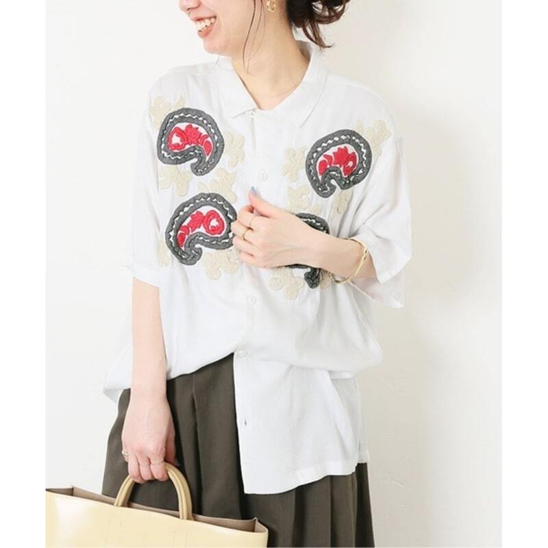 > NOMA t.d. 刺繍 半袖 シャツ 3 L 透け感 シアー 白色 エスニック アジアン ブラウス レディース トップス oldmans tailor beams Bshop iena