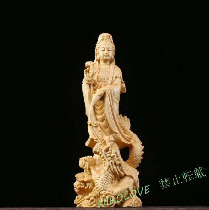 - 新品極上質 木彫 開運風水 御龍観音像 ッゲ 彫刻工芸品 高級天然 ツゲ木彫り 風水グッズ 贈り物 LD715