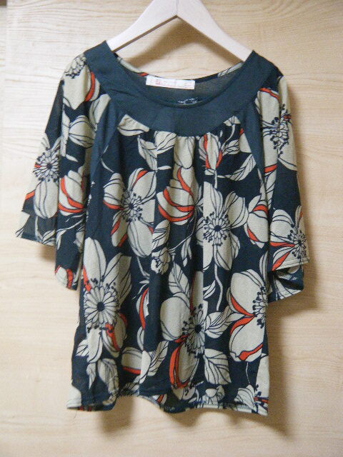 - MELROSE claire 五分袖チュニック R8010 深緑花柄 メルローズ