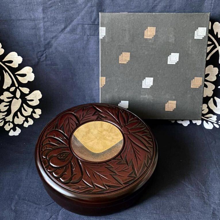 > 【石川県 金沢 箔一 天然木 菓子器】古代ヤンポ菓子器 菓子盆 菓子入れ ヤンポ 木彫り 木製 漆器 茶道具 煎茶道具 昭和レトロ