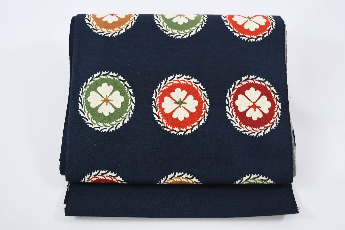 - 袋名古屋帯 丸文 花 綿 帯丈364cm ★着物屋 ne-10747 桜庭呉服店