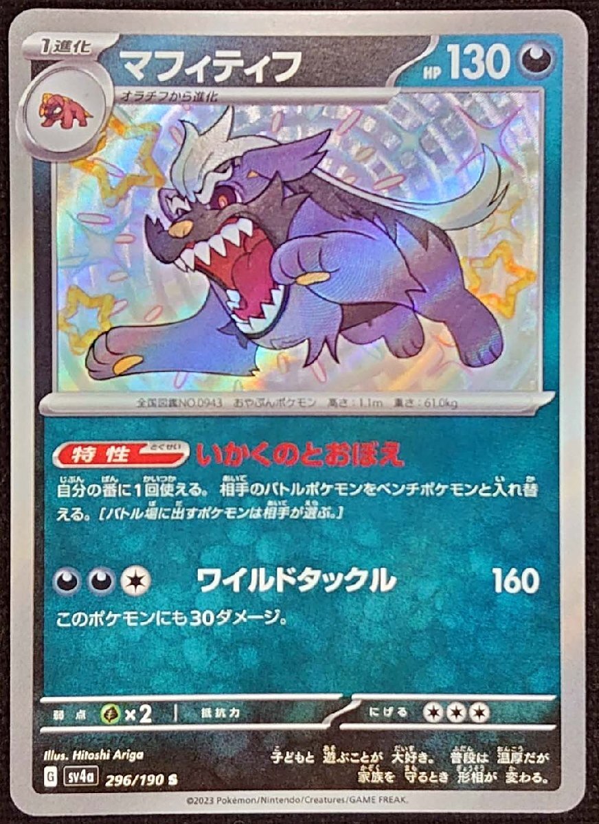 > 【ポケモンカード】マフィティフ HP130(2023年版色違い)G sv4a 296/190 S