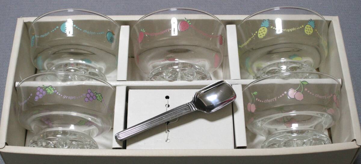 - ★レトロ品 東洋ガラス アイスクリームセット 5個 フルーツ柄 スプーン付 長期保管品 現状品★