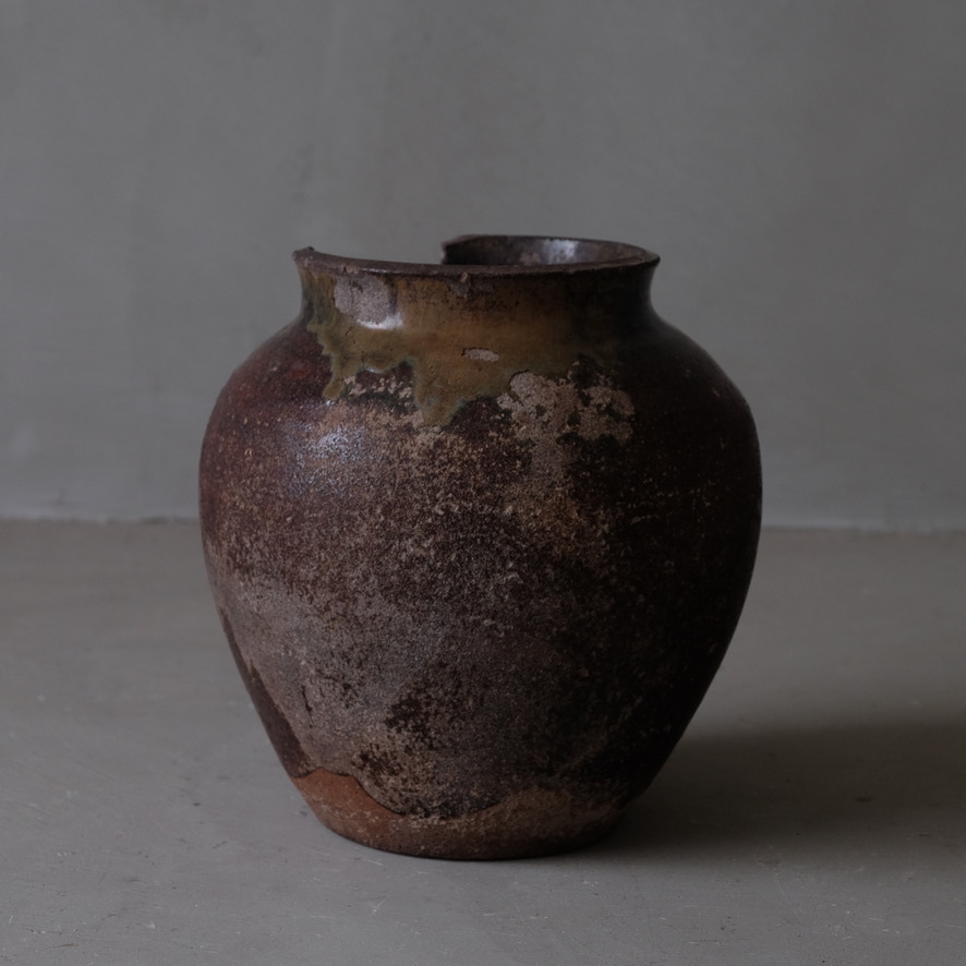 - 03168 口の欠けた壺 / 壷 甕 花瓶 陶器 骨董 古美術 時代 古道具 民藝 アンティーク