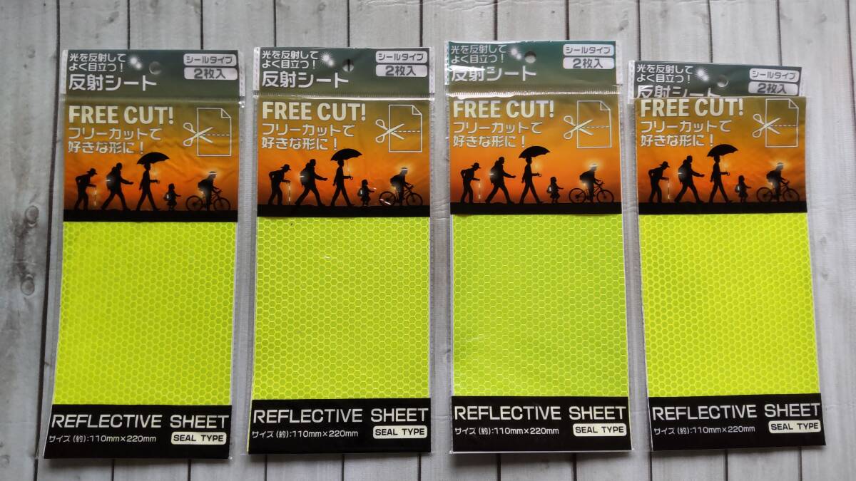 - 未開封未使用新品 反射シート(約110×220mm)2枚入×4個セット 蛍光イエロー シールタイプ フリーカット 自転車