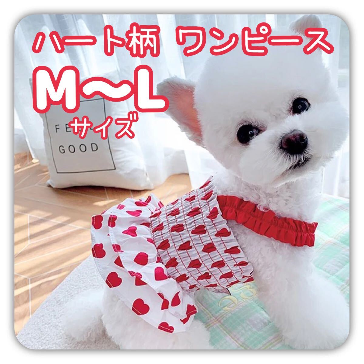 - 犬服 夏 小型犬 ハート柄 ワンピース キャミワンピ フリルスカート 白 赤 ホワイト レッド Mサイズ Lサイズ M L