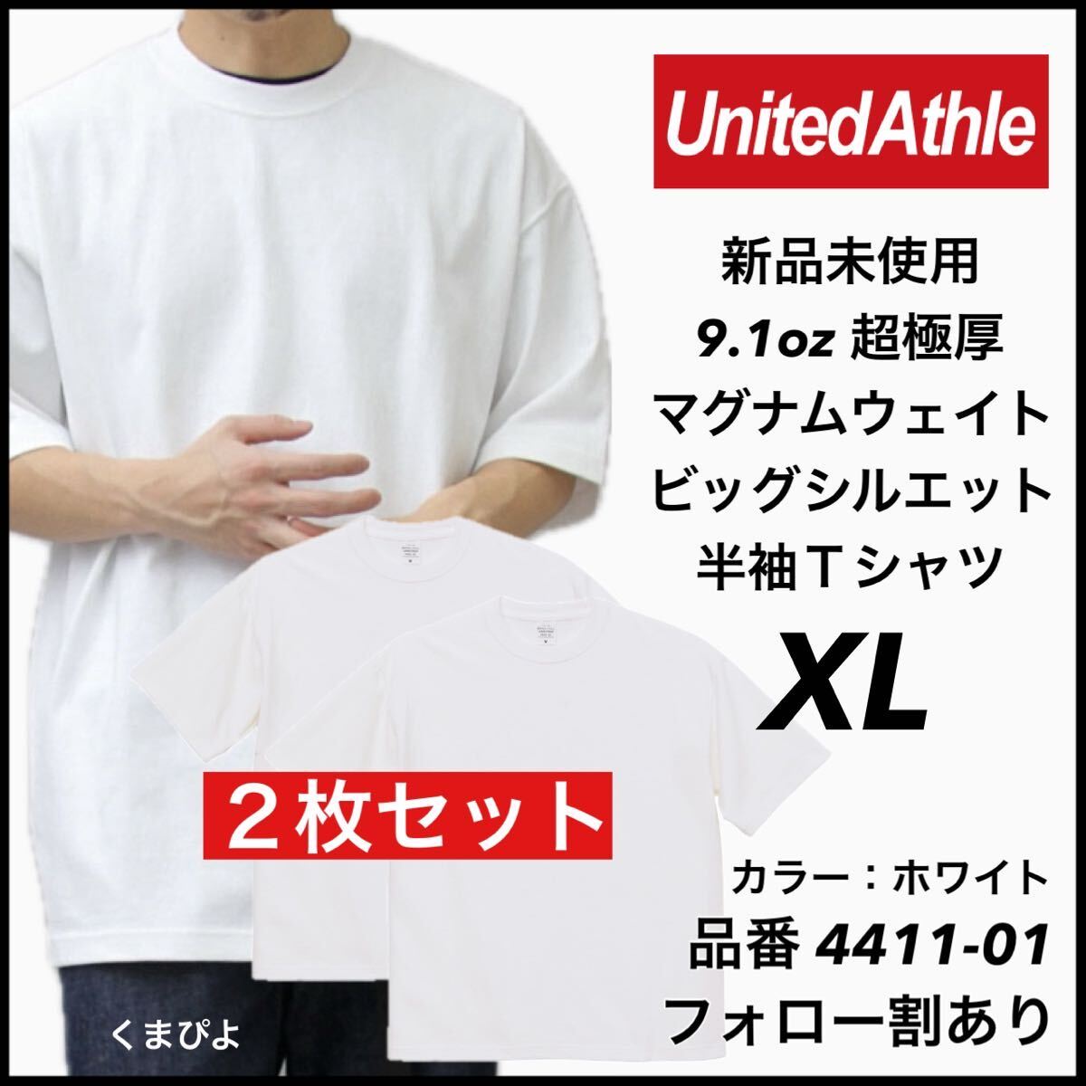 > 新品未使用 ユナイテッドアスレ 9.1oz 超極厚 マグナムウェイト ビッグシルエット 半袖Tシャツ 白 ホワイト XLサイズ 2枚 United Athle