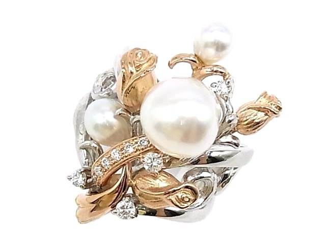 > g19048 Pt900/K18 バロックパール4.7-8.9mm D0.21ct リング USED 美品 21.0g #12