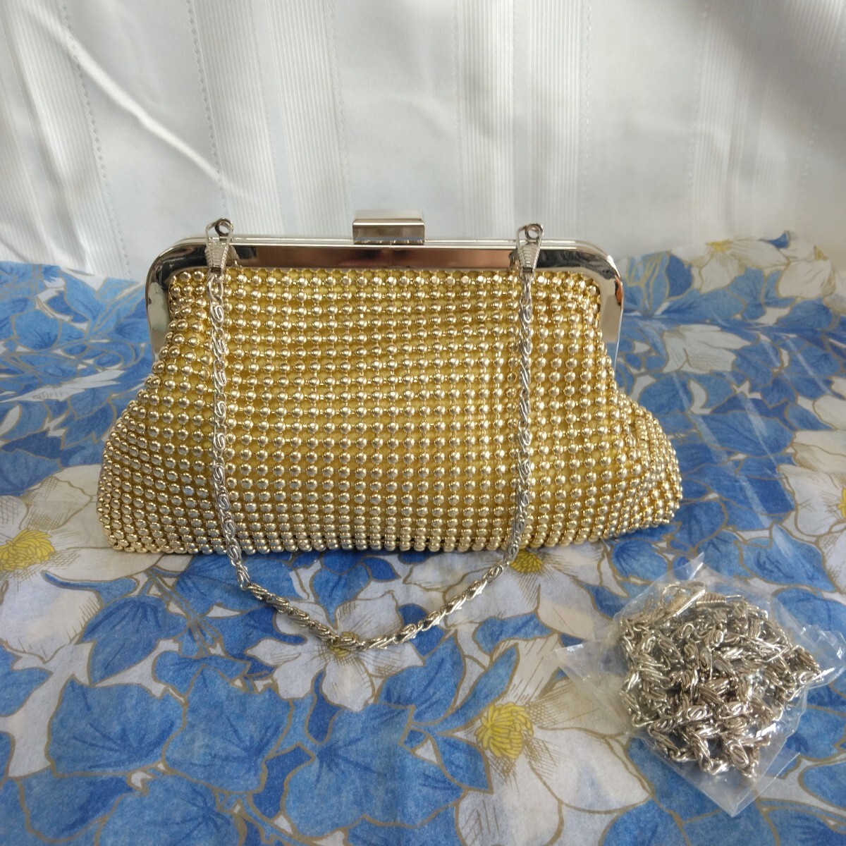 - 美品【 ドレスバッグ 】レディース ハンドバッグ チェーンショルダー付き パーティ用 ゴールド エレガント 洋装 オシャレ がま口 箱無し
