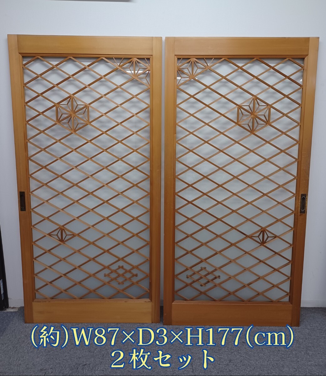 - 岩【引取限定/愛知】引き戸 2枚セット 格子戸板 建具 硝子 和 古民家 戸 リノベーション 格子 日本 ガラス アンティーク 昭和レトロ 240626