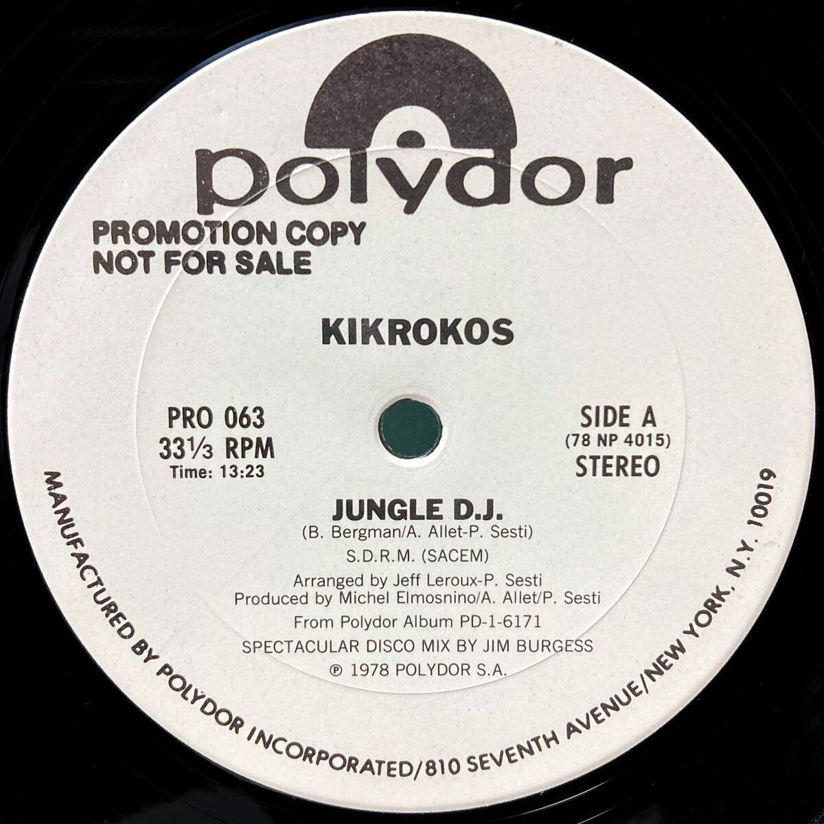 > [12] '78米Promo / Kikrokos / Jungle D.J. / Polydor / PRO 063 / Disco