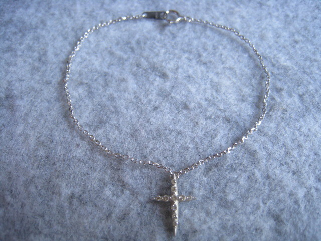 - [SAMU]素敵!!輝きダイヤモンド0.08ct 十字架 k10WGブレスレット★美品!