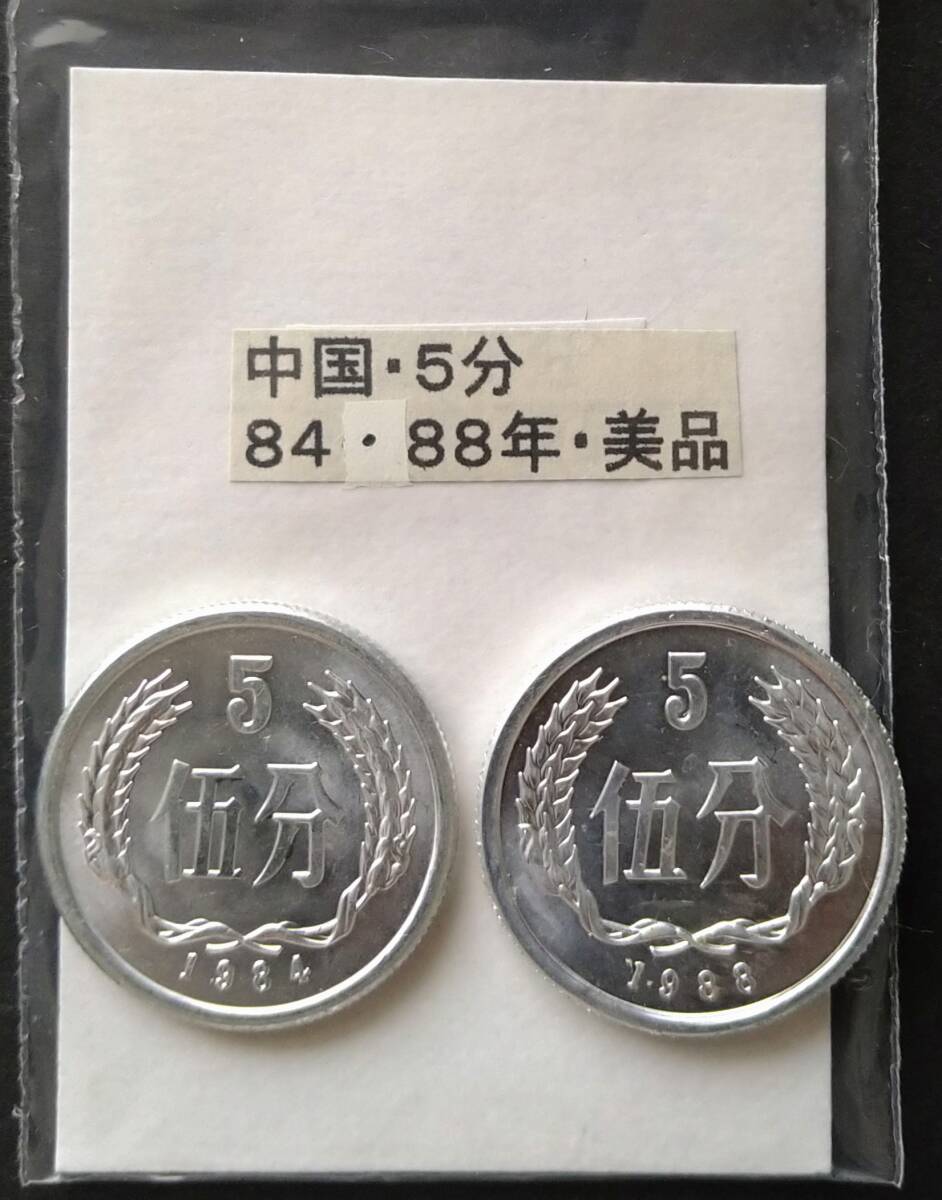 - 中国・5分硬貨・1984年・1988年(2枚)