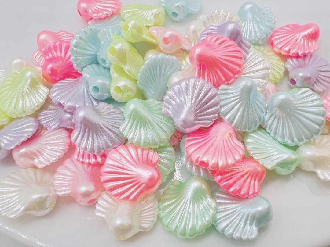 - パールビーズ [14mm貝-20g] デコパーツ プラパーツ パステル 素材
