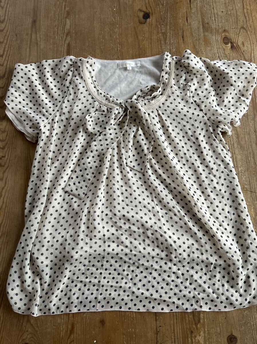 - レディース Tシャツ L 夏服 半袖T 夏服 オフィスカジュアル お出かけ サラサラ カットソー ブラウスドット 水玉