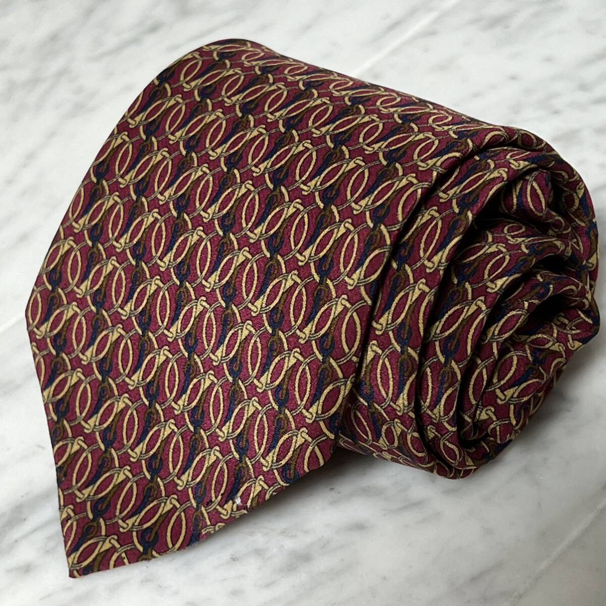 - 770円~ Christian Dior ネクタイ レッド系 ベルト 金具 総柄 (R1)
