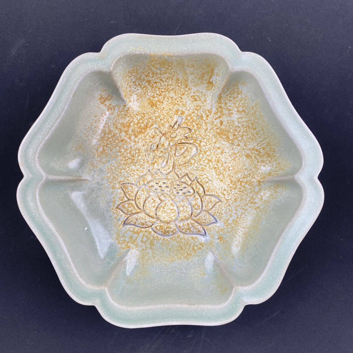 - 中国 古美術 宋代 汝窯 青釉 陽刻 青磁 飾皿 古美術 藏出現品 輪花 天青中国 水盤 筆洗 水仙盆 南宋